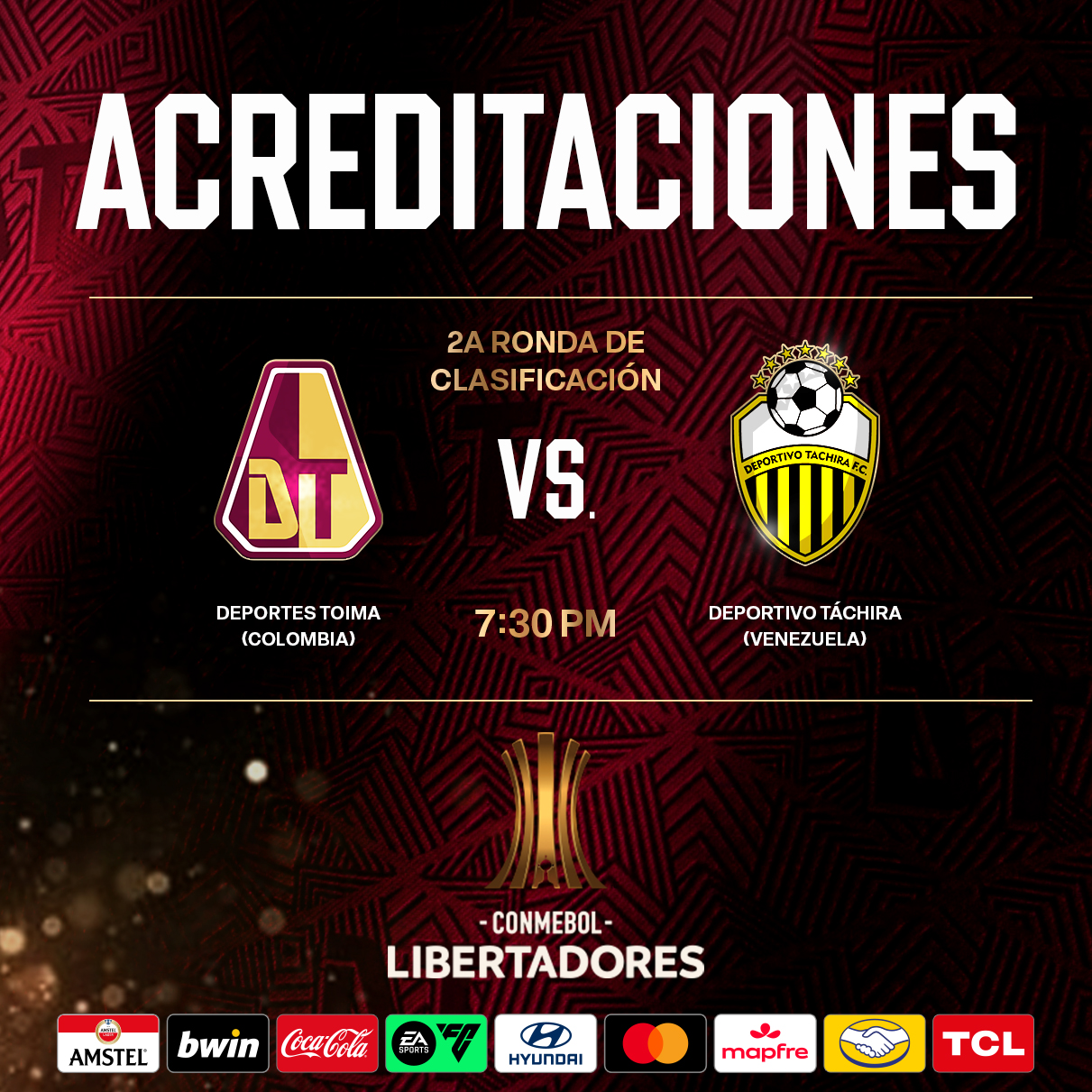 Proceso de acreditación – CONMEBOL Libertadores: Vuelta – Deportes Tolima Vs. Deportivo Táchira